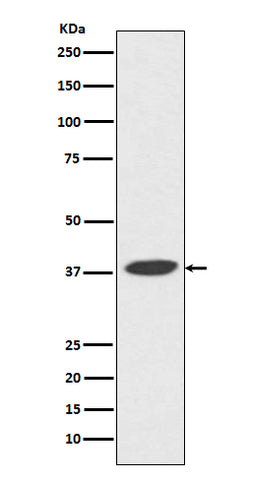 Calculated MW: 38 kDa; Observed MW: 38 kDa